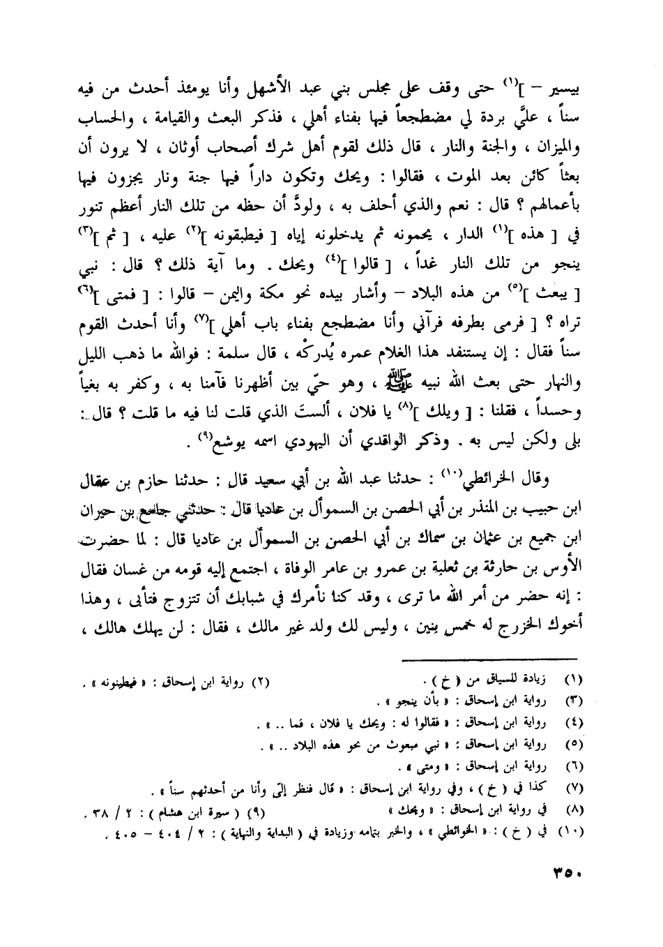 [ (5) ] رواية ابن إسحاق: «نبي مبعوث من نحو هذه البلاد..» .