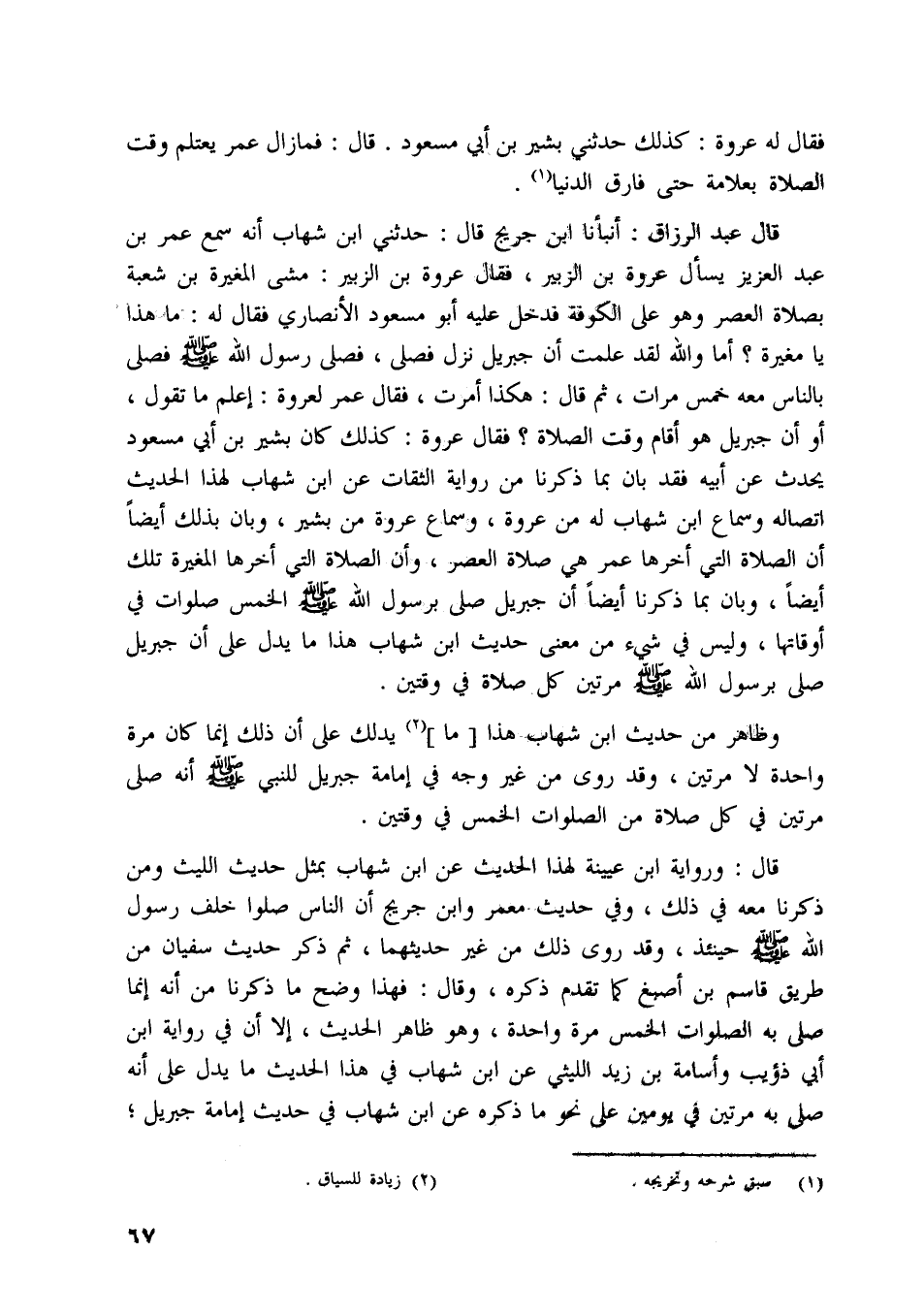 فقال عمر لعروة: اعلم ما تقول، أو أن جبريل هو أقام وقت الصلاة؟ فقال عروة: كذلك كان بشير بن أبي مسعود يحدث عن أبيه فقد بان بما ذكرنا من رواية الثقات عن ابن شهاب لهذا الحديث اتصاله وسماع ابن شهاب له من عروة، وسماع عروة من بشير، وبان بذلك أيضا أن الصلاة التي أخرها عمر هي صلاة العصر، وأن الصلاة التي أخرها المغيرة تلك أيضا، وبان بما ذكرنا أيضا أن جبريل صلّى برسول اللَّه صلّى اللَّه عليه وسلّم الخمس صلوات في أوقاتها، وليس في شيء من معنى حديث ابن شهاب هذا ما يدل على أن جبريل صلّى برسول اللَّه صلّى اللَّه عليه وسلّم مرتين كل صلاة في وقتين.