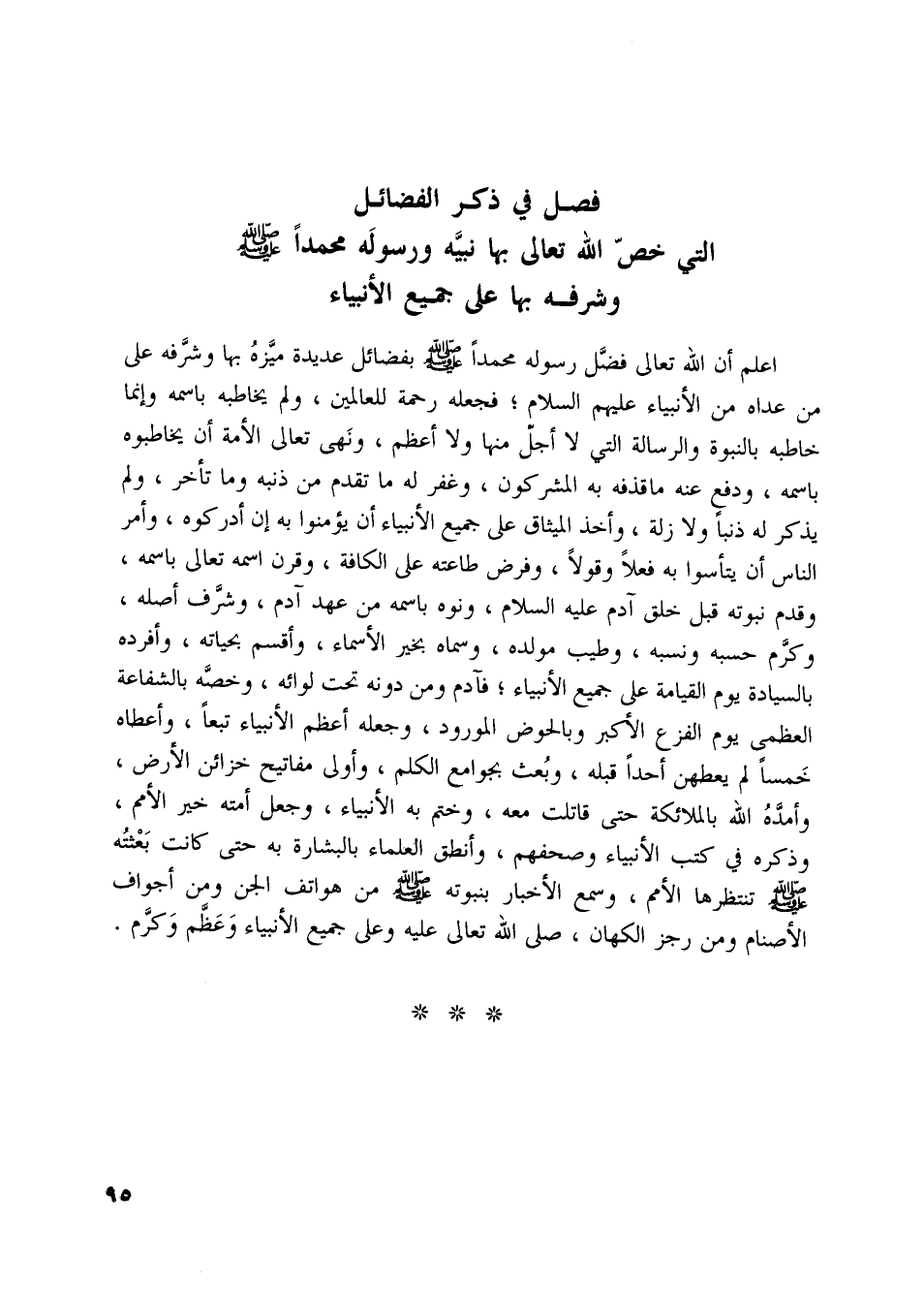 فصل في ذكر الفضائل التي خصّ اللَّه تعالى بها نبيّه ورسوله محمدا صلى اللَّه عليه وسلّم وشرفه بها على جميع الأنبياء