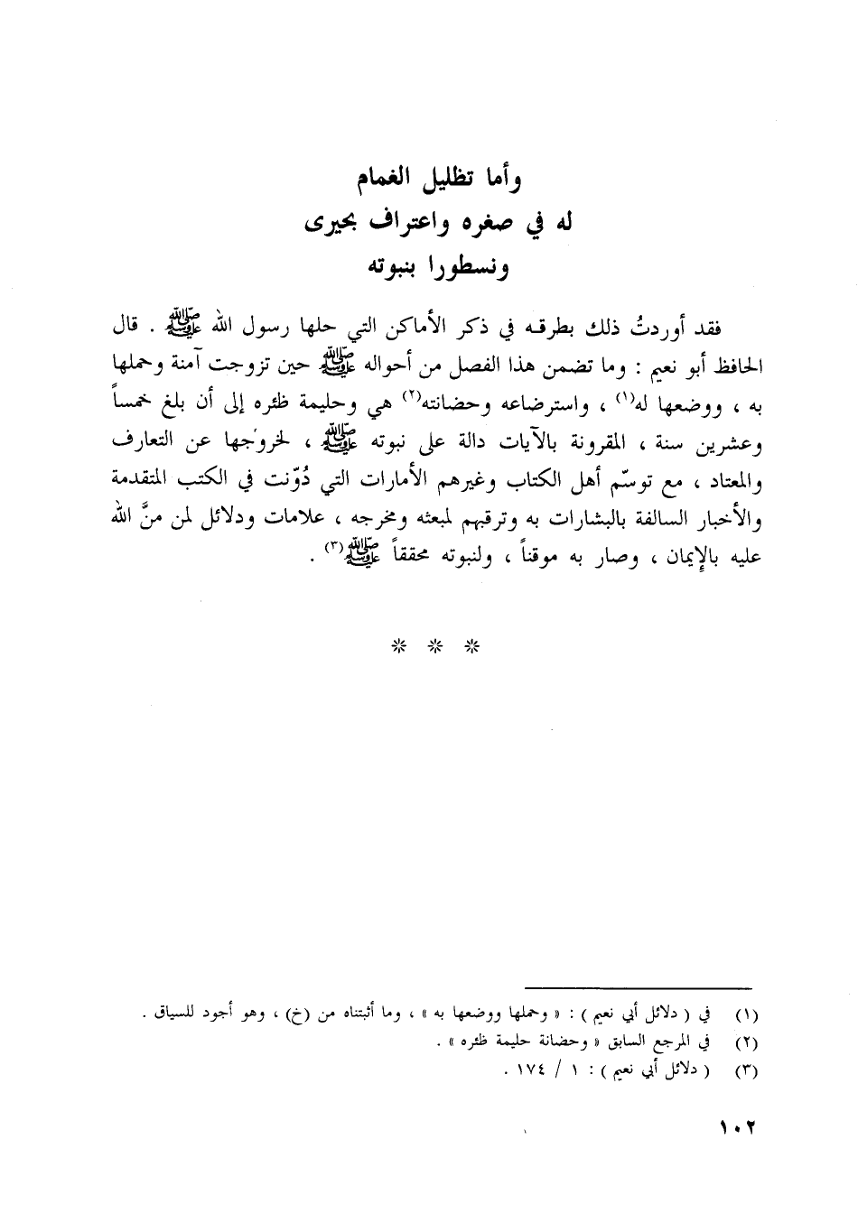 وأما تظليل الغمام له في صغره واعتراف بحيرى ونسطورا بنبوته