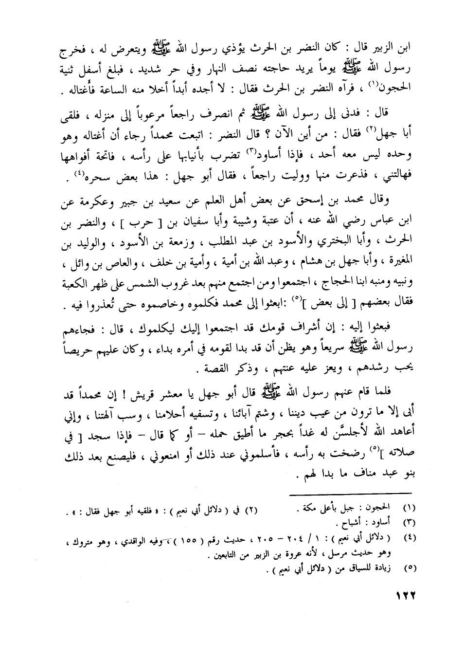 ابن الزبير قال: كان النضر بن الحرث يؤذي رسول اللَّه صلّى اللَّه عليه وسلم ويتعرض له، فخرج رسول اللَّه صلّى اللَّه عليه وسلم يوما يريد حاجته نصف النهار وفي حر شديد، فبلغ أسفل ثنية الحجون [ (1) ] ، فرآه النضر بن الحرث فقال: لا أجده أبدا أخلا منه الساعة فأغتاله.