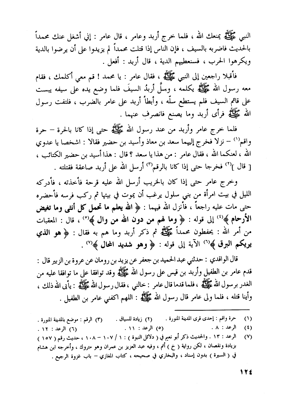 [ (7) ] الرعد: 13. والحديث ذكر أبو نعيم في (دلائل النبوة) : 1/ 107- 108، حديث رقم (157) بزيادة ونقصان، لكن رواية (خ) أتم، وفيه عبد العزيز بن عمران وهو متروك، وأخرجه ابن هشام في (السيرة) بدون إسناد، والبخاري في صحيحه، كتاب المغازي- باب غزوة الرجيع.