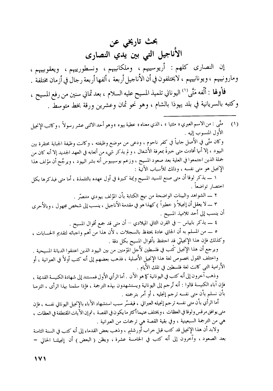 بحث تاريخي عن الأناجيل التي بين يدي النصارى