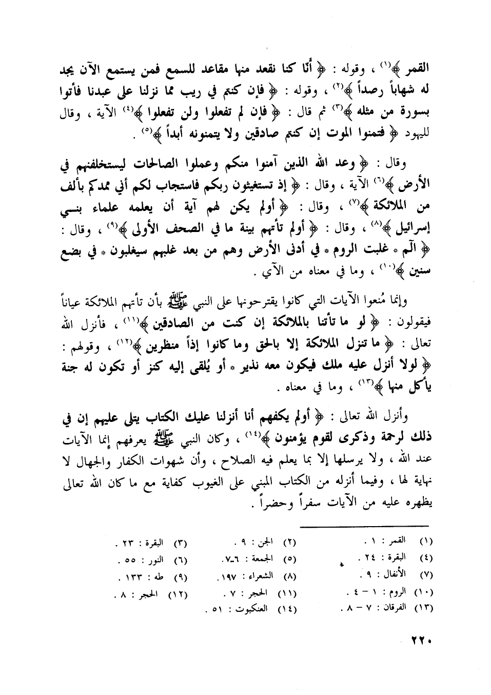 وقال: وَعَدَ اللَّهُ الَّذِينَ آمَنُوا مِنْكُمْ وَعَمِلُوا الصَّالِحاتِ لَيَسْتَخْلِفَنَّهُمْ فِي الْأَرْضِ [ (6) ] الآية، وقال: إِذْ تَسْتَغِيثُونَ رَبَّكُمْ فَاسْتَجابَ لَكُمْ أَنِّي مُمِدُّكُمْ بِأَلْفٍ مِنَ الْمَلائِكَةِ [ (7) ] ، وقال: أَوَلَمْ يَكُنْ لَهُمْ آيَةً أَنْ يَعْلَمَهُ عُلَماءُ بَنِي إِسْرائِيلَ [ (8) ] ، وقال: أَوَلَمْ تَأْتِهِمْ بَيِّنَةُ ما فِي الصُّحُفِ الْأُولى [ (9) ] ، وقال: