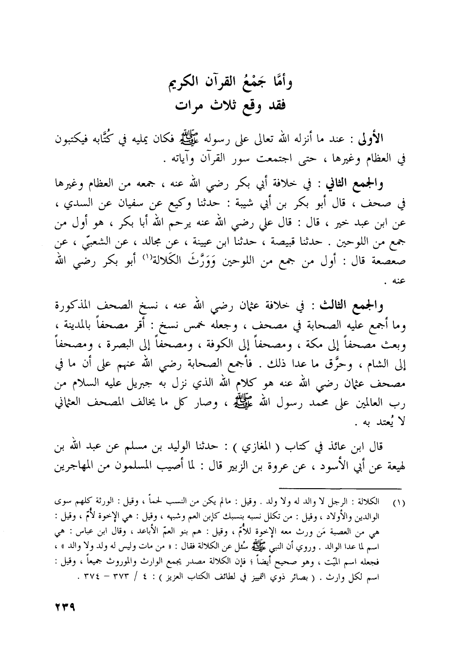 وأمّا جمع القرآن الكريم فقد وقع ثلاث مرات