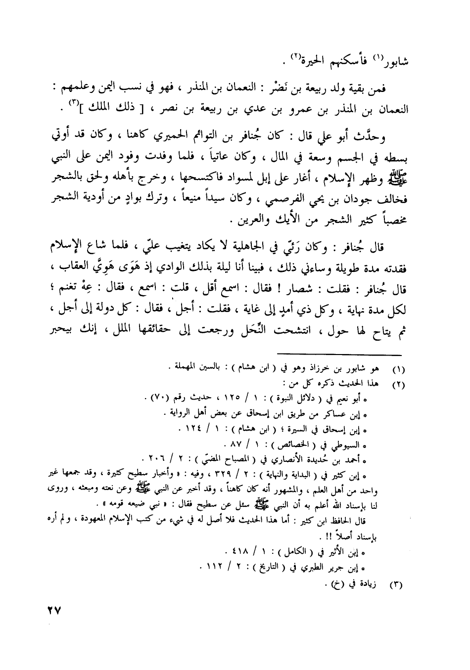 [ (1) ] هو شابور بن خرزاد وهو في (ابن هشام) : بالسين المهملة.
