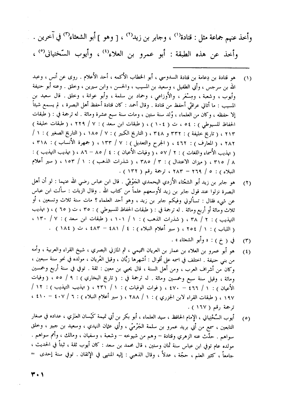 وأخذ عن هذه الطبقة: أبو عمرو بن العلاء [ (4) ] ، وأيوب السّختياني [ (5) ] ،