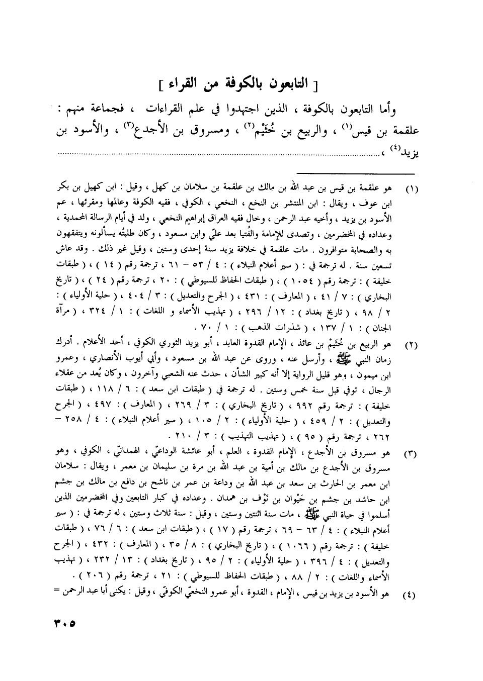 وأما التابعون بالكوفة، الذين اجتهدوا في علم القراءات، فجماعة منهم: