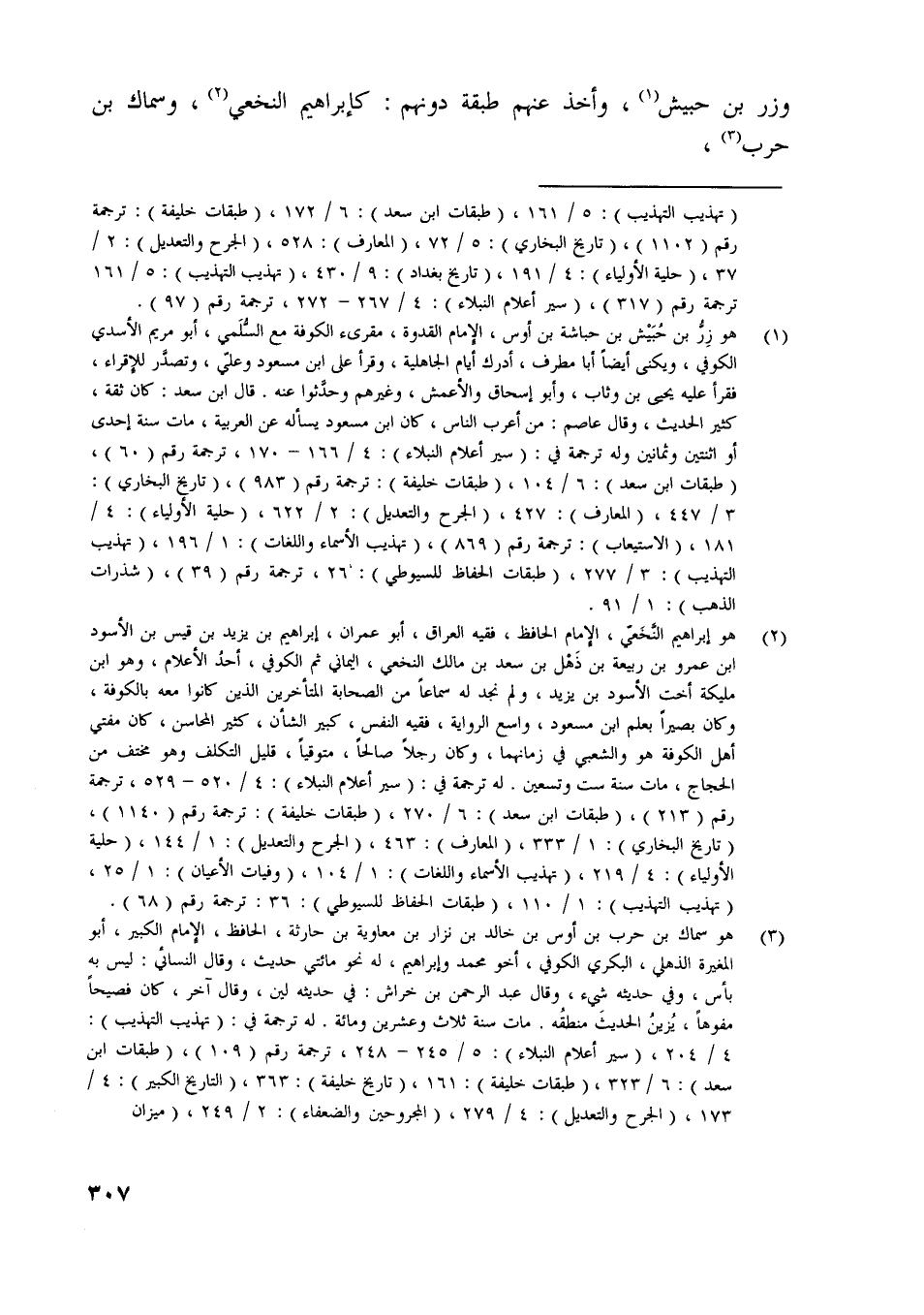 وزر بن حبيش [ (1) ] ، وأخذ عنهم طبقة دونهم: كإبراهيم النخعي [ (2) ] ، وسماك بن حرب [ (3) ] ،