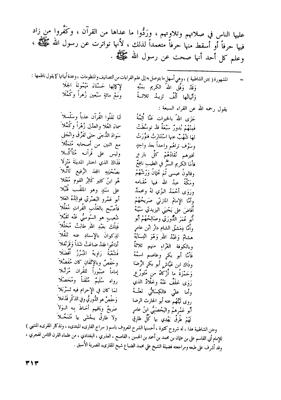 جزى اللَّه بالخيرات عنّا أئمّة ... لنا نقلوا القرآن عذبا وسلسلا