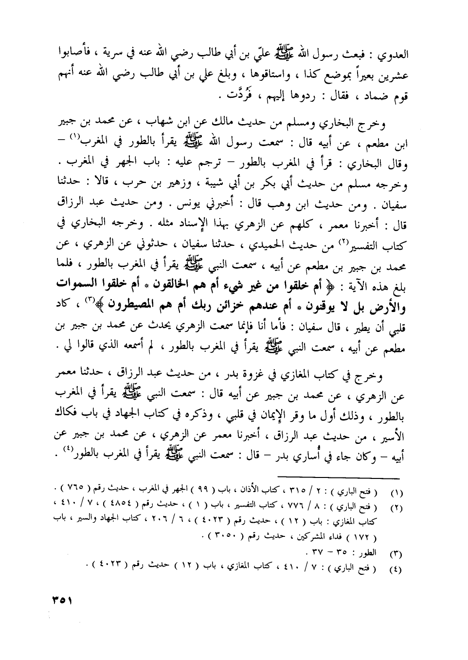 [ (1) ] (فتح الباري) : 2/ 315، كتاب الأذان، باب (99) الجهر في المغرب، حديث رقم (765) .