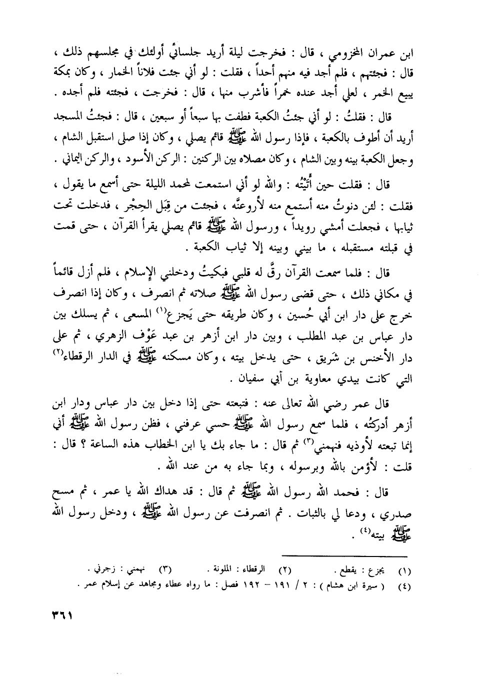[ (4) ] (سيرة ابن هشام) : 2/ 191- 192 فصل: ما رواه عطاء ومجاهد عن إسلام عمر.