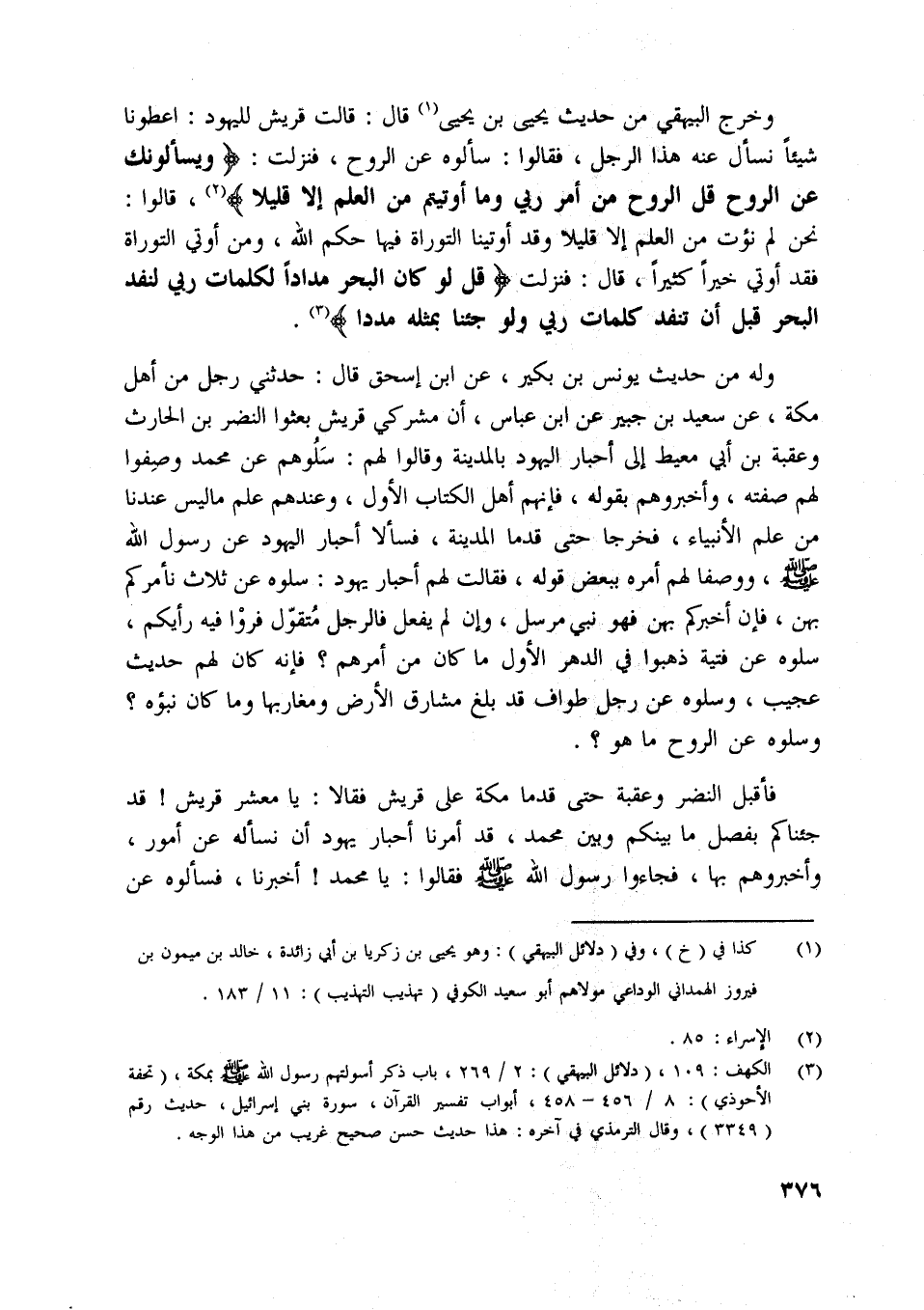 [ (3) ] الكهف: 109، (دلائل البيهقي) : 2/ 269، باب ذكر أسولتهم رسول اللَّه صلّى اللَّه عليه وسلم بمكة، (تحفة الأحوذي) : 8/ 456- 458، أبواب تفسير القرآن، سورة بني إسرائيل، حديث رقم (3349) ، وقال الترمذي في آخره: هذا حديث حسن صحيح غريب من هذا الوجه.