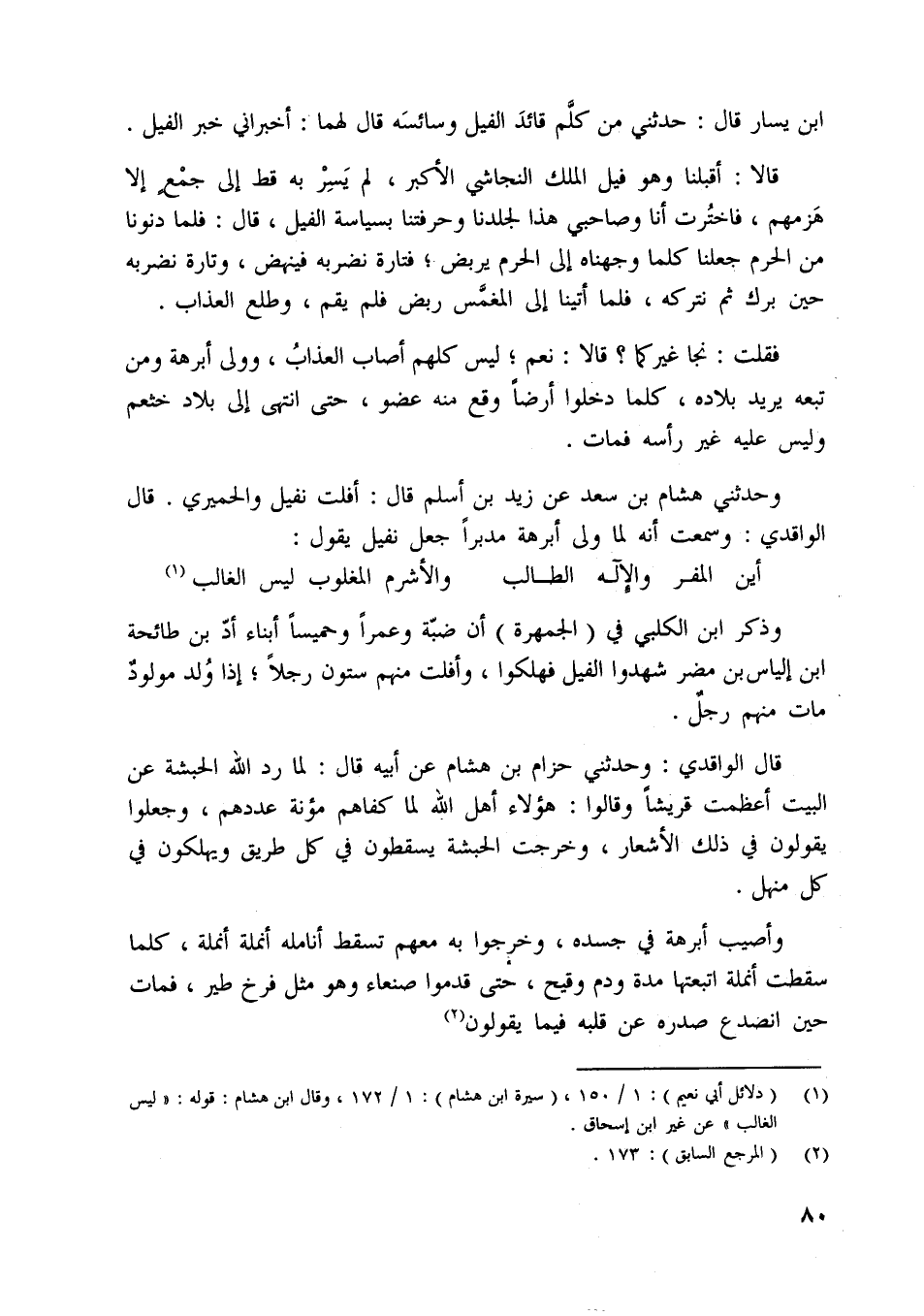 ابن يسار قال: حدثني من كلّم قائد الفيل وسائسه قال لهما: أخبراني خبر الفيل.