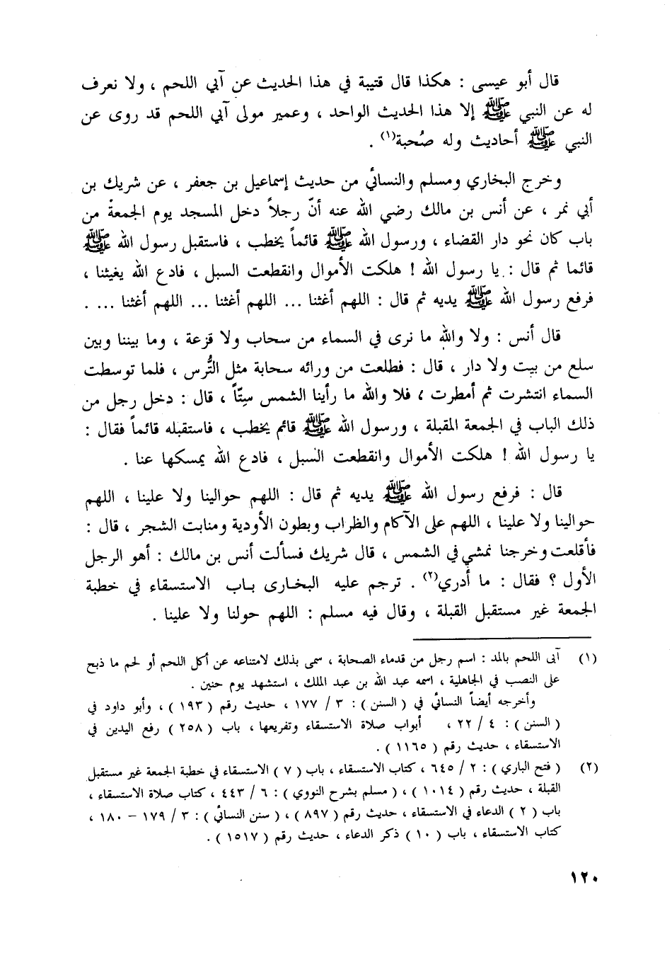 [ (2) ] (فتح الباري) : 2/ 645، كتاب الاستسقاء، باب (7) الاستسقاء في خطبة الجمعة غير مستقبل القبلة، حديث رقم (1014) ، (مسلم بشرح النووي) : 6/ 443، كتاب صلاة الاستسقاء، باب (2) الدعاء في الاستسقاء، حديث رقم (897) ، (سنن النسائي) : 3/ 179- 180، كتاب الاستسقاء، باب (10) ذكر الدعاء، حديث رقم (1517) .