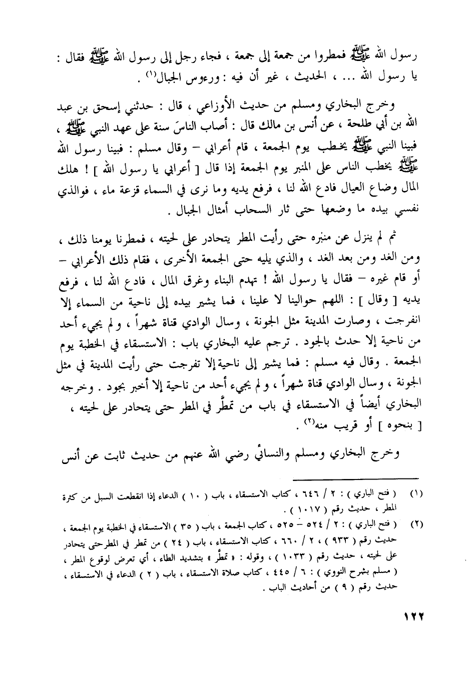 [ (1) ] (فتح الباري) : 2/ 646، كتاب الاستسقاء، باب (10) الدعاء إذا انقطعت السبل من كثرة المطر، حديث رقم (1017) .