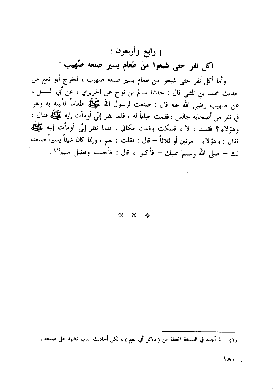 [رابع وأربعون: أكل نفر حتى شبعوا من طعام يسير صنعه صهيب]