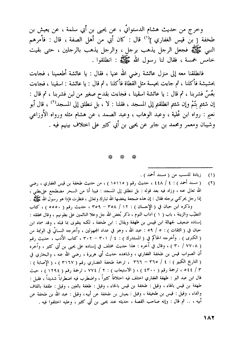 [ (2) ] (مسند أحمد) : 4/ 448، حديث رقم (15115) ، من حديث طخفة بن قيس الغفاريّ، رضي اللَّه تعالى عنه، وزاد فيه بعد قوله: بل ننطلق إلى المسجد: فبينا أنا من السحر مضطجع على بطني، إذا رجل يحركني برجله فقال: إن هذه ضجعة يبغضها اللَّه تبارك وتعالى، فنظرت فإذا هو رسول اللَّه صلّى اللَّه عليه وسلم.