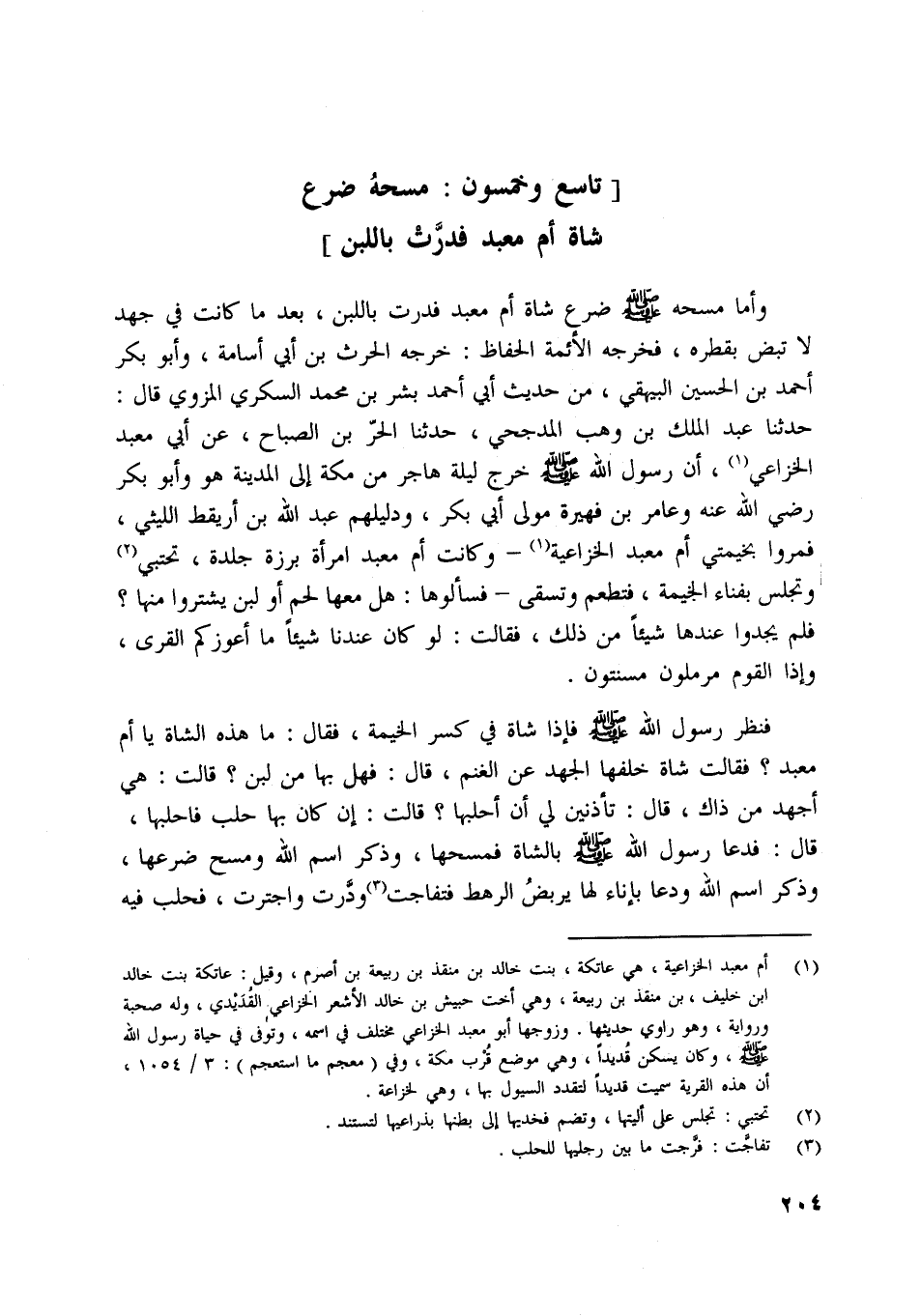 [تاسع وخمسون: مسحه ضرع شاة أم معبد فدرّت باللبن]
