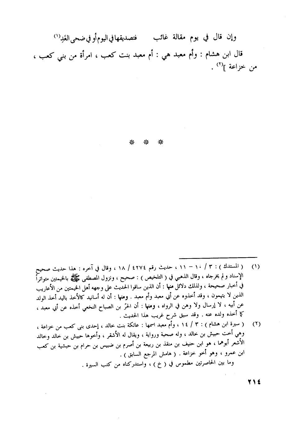 قال ابن هشام: وأم معبد هي: أم معبد بنت كعب، امرأة من بني كعب، من خزاعة] [ (2) ] .