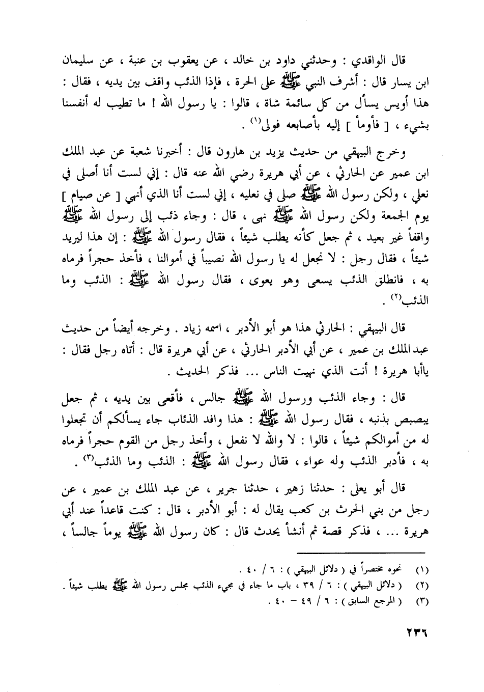 [ (2) ] (دلائل البيهقي) : 6/ 39، باب ما جاء في مجيء الذئب مجلس رسول اللَّه صلّى اللَّه عليه وسلّم يطلب شيئا.