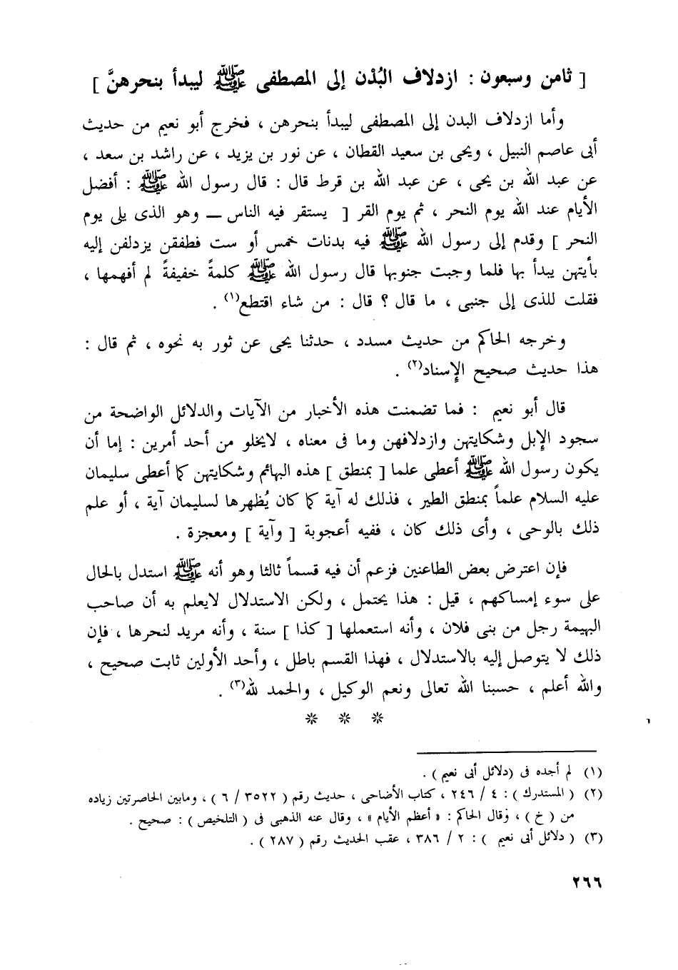 [ (3) ] (دلائل أبي نعيم) : 2/ 386، عقب الحديث رقم (287) .