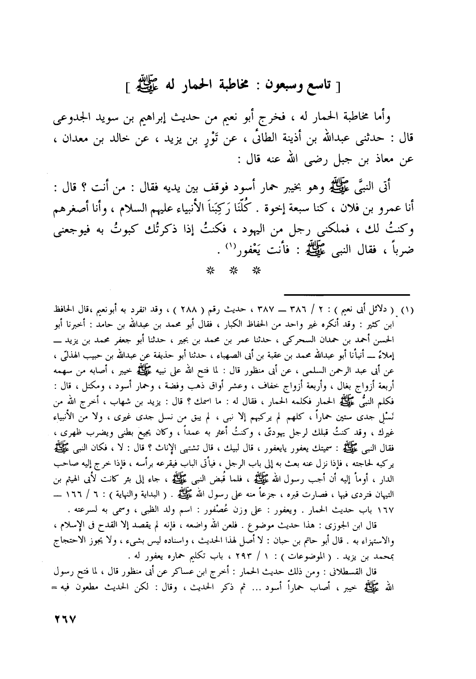 [تاسع وسبعون: مخاطبة الحمار له صلّى اللَّه عليه وسلّم]