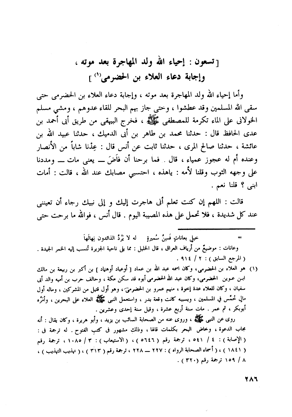 [تسعون: إحياء اللَّه ولد المهاجرة بعد موته، وإجابة دعاء العلاء بن الحضرميّ [ (1) ]]