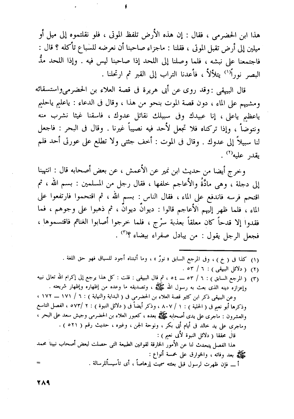 وعن البيهقي ذكر ابن كثير قصة العلاء بن الحضرميّ في (البداية والنهاية) : 6/ 171- 172، وذكرها أبو نعيم في (الحلية) : 1/ 807، وذكر أيضا في (دلائل النبوة) : 2/ 573، الفصل التاسع والعشرون: ما جرى على يدي أصحابه صلّى اللَّه عليه وسلّم بعده، كعبور العلاء بن الحضرميّ وجيش سعد على البحر، وما جرى على يد خالد في أيام أبى بكر، ونوحة الجن، وغيره، حديث رقم (521) .