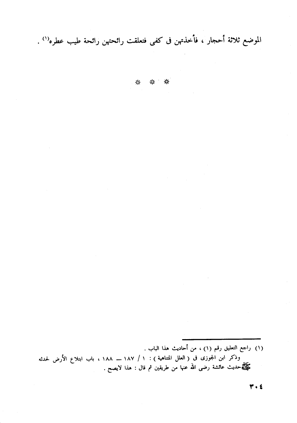 الموضع ثلاثة أحجار، فأخذتهن في كفى فتعلقت رائحتهن رائحة طيب عطرة [ (1) ] .