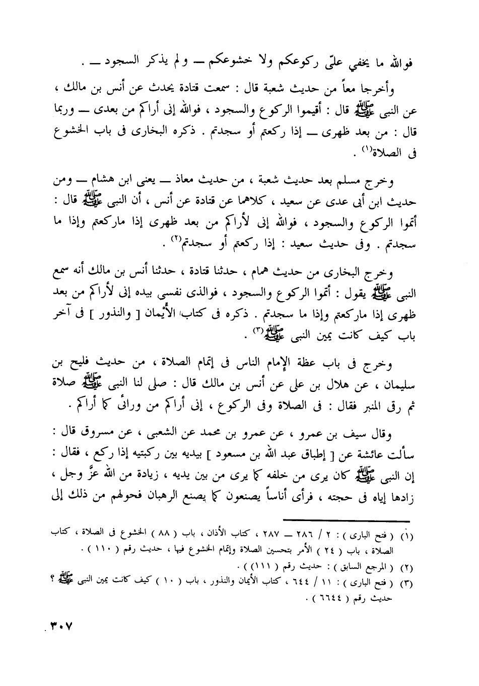 [ (1) ] (فتح الباري) : 2/ 286- 287، كتاب الأذان، باب (88) الخشوع في الصلاة، كتاب الصلاة، باب (24) الأمر بتحسين الصلاة وإتمام الخشوع فيها، حديث رقم (110) .