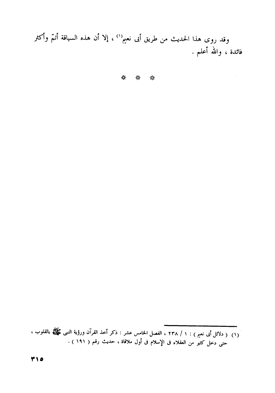 [ (1) ] (دلائل أبي نعيم) : 1/ 238، الفصل الخامس عشر: ذكر أخذ القرآن ورؤية النبي صلّى اللَّه عليه وسلّم بالقلوب، حتى دخل كثير من العقلاء في الإسلام في أول ملاقاة، حديث رقم (191) .