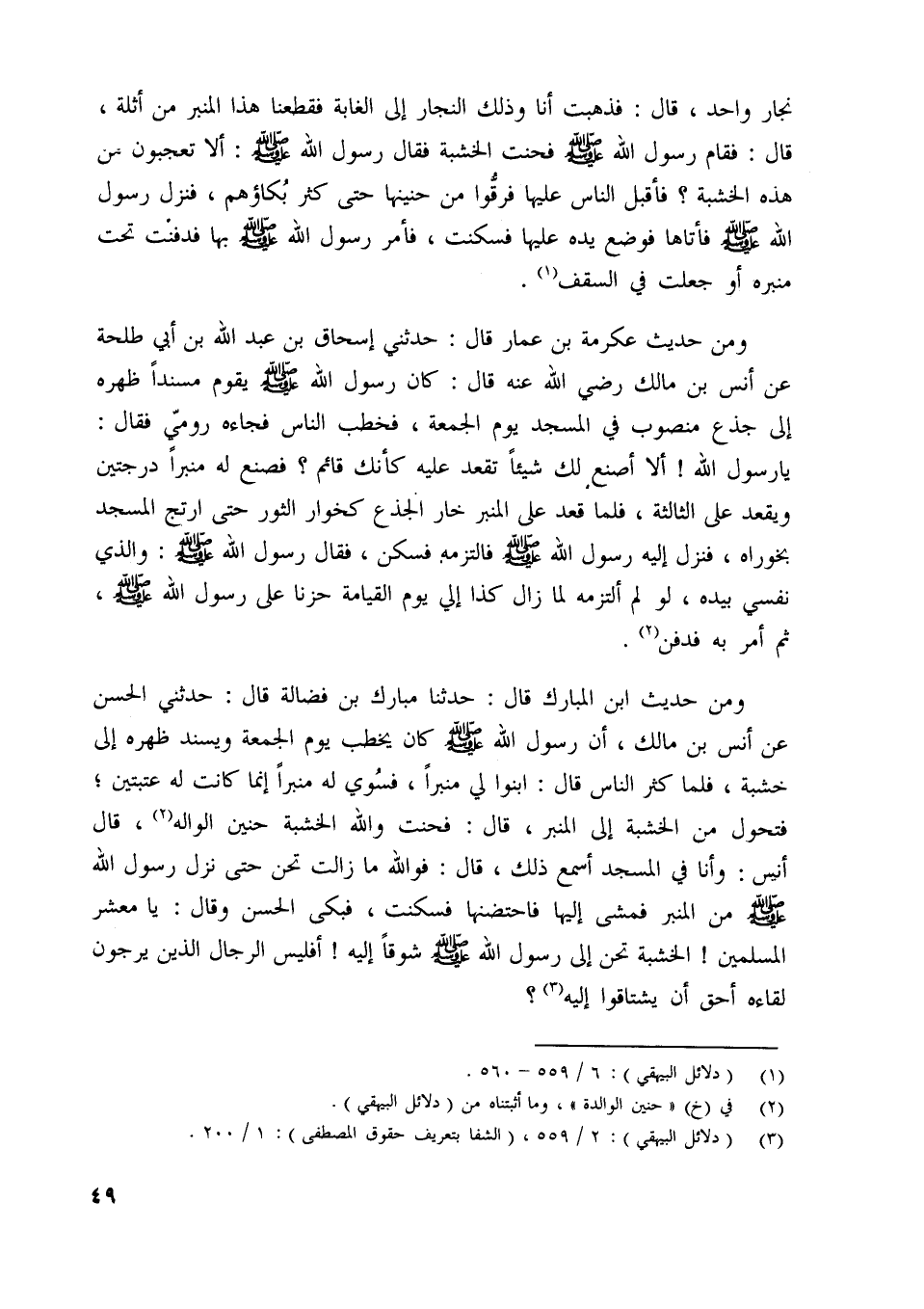 [ (3) ] (دلائل البيهقي) : 2/ 559، (الشفا بتعريف حقوق المصطفى) : 1/ 200.