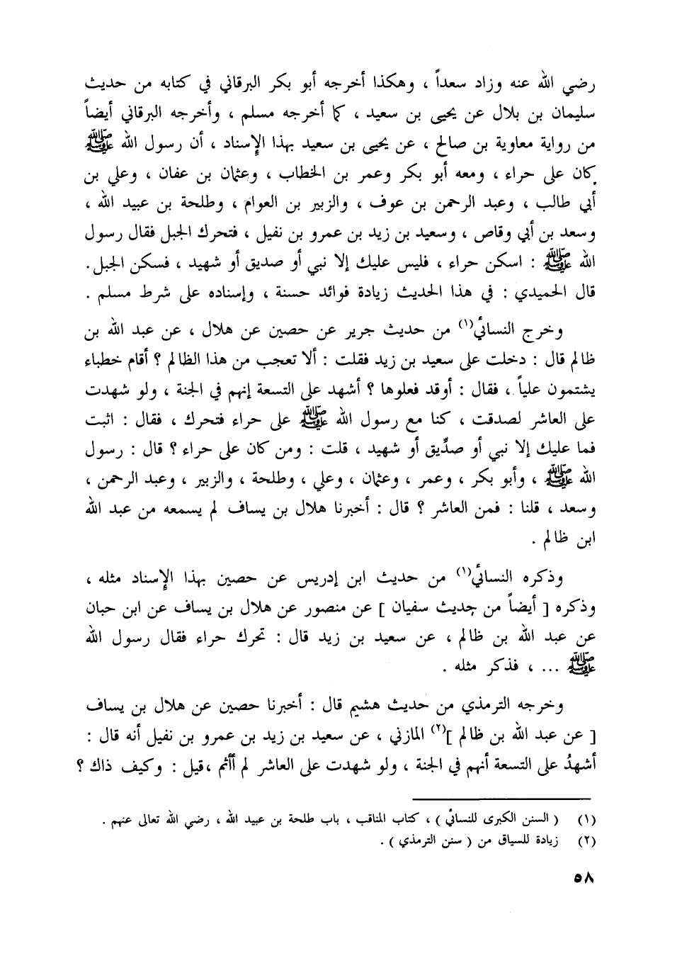 [ (1) ] (السنن الكبرى للنسائي) ، كتاب المناقب، باب طلحة بن عبيد اللَّه، رضي اللَّه تعالى عنهم.