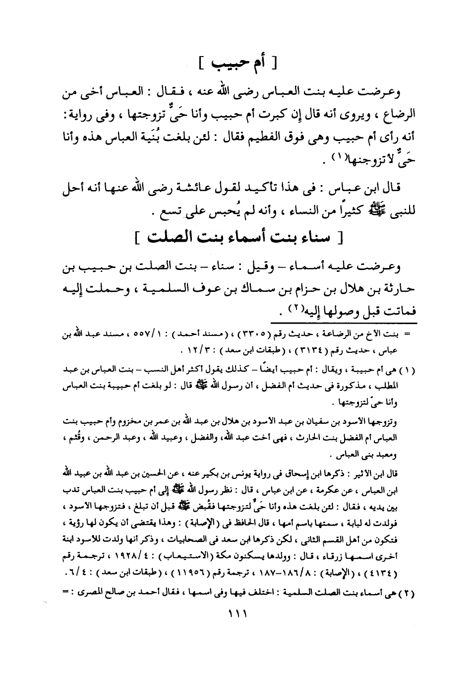 [ (1) ] هي أم حبيبة، ويقال: أم حبيب أيضا- كذلك يقول أكثر أهل النسب- بنت العباس بن عبد المطلب، مذكورة