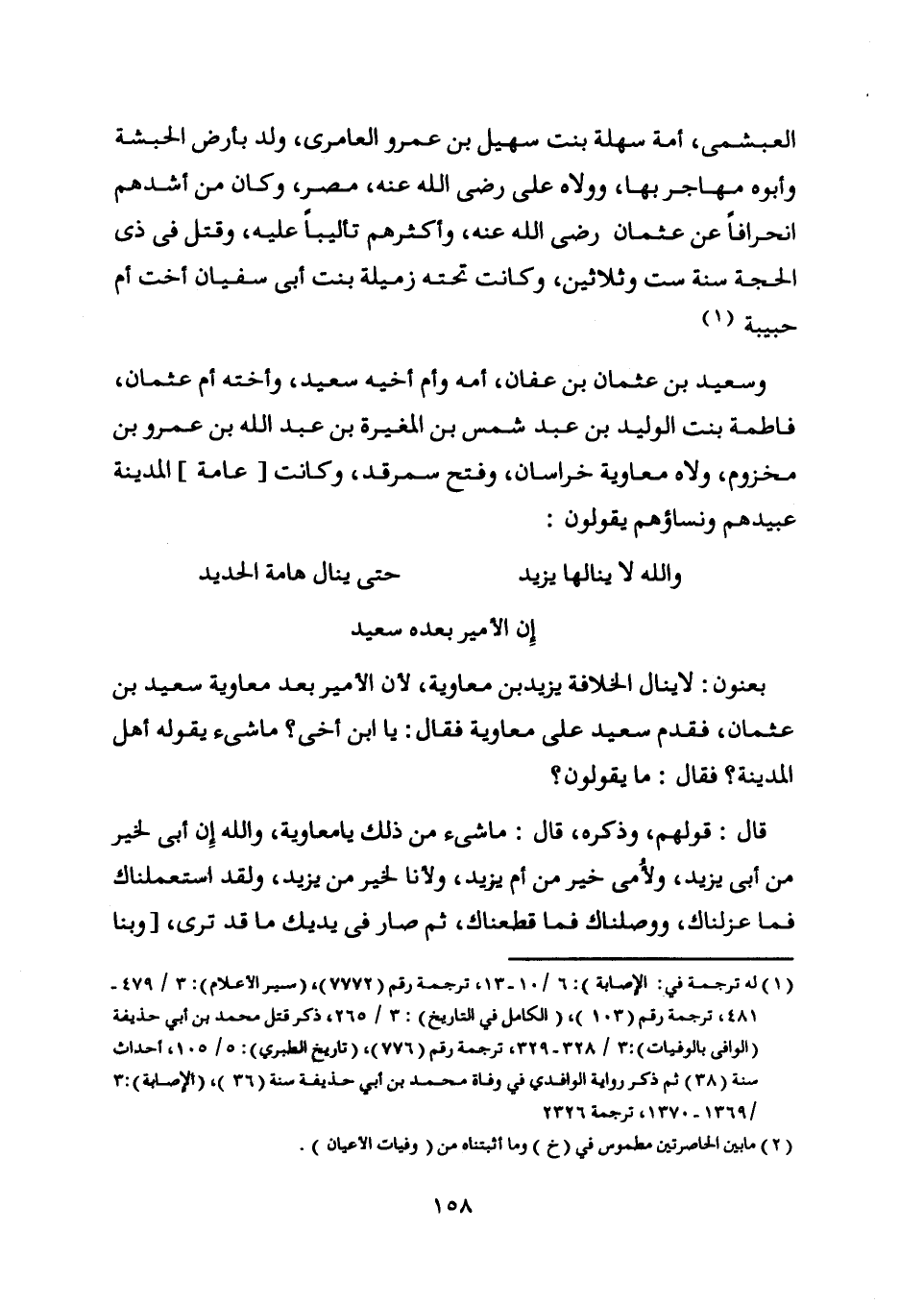 يعنون: لا ينال الخلافة يزيد بن معاوية، لأن الأمير بعد معاوية سعيد بن عثمان، فقدم سعيد على معاوية فقال: يا ابن أخى؟ ما شيء يقوله أهل المدينة؟ فقال: ما يقولون؟