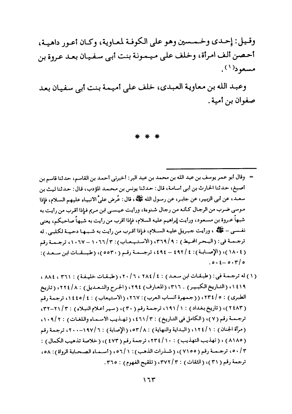 وعبد اللَّه بن معاوية العبديّ، خلف على أميمة بنت أبى سفيان بعد صفوان بن أمية.