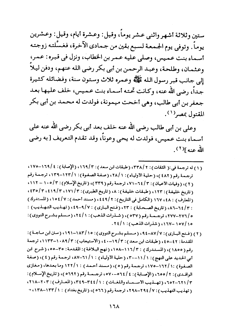 [ (1) ] له ترجمة في: (الثقات) : 2/ 338، (طبقات ابن سعد) : 3/ 169، (الإصابة) : 4/ 169- 175، ترجمة رقم (482) ، (حلية الأولياء) : 1/ 28، (صفة الصفوة) : 1/ 123- 139، ترجمة رقم (2) ، (وفيات الأعيان) : 3/ 64- 71، ترجمة رقم (339) ، (تاريخ الإسلام) : 3/ 105- 112، (تاريخ خليفة) : 123، (طبقات خليفة) : 8، (تاريخ الطبري) : 3/ 171، 3/ 419، 3/ 435، (المعارف) : 48، 167 (الكامل في التاريخ) : 2/ 449، (مسند أحمد) : 7/ 154، (المستدرك) : 3/ 64- 86، (تاريخ الصحابة) : 23، (فتح الباري) : 7/ 9- 49، (تهذيب التهذيب) :