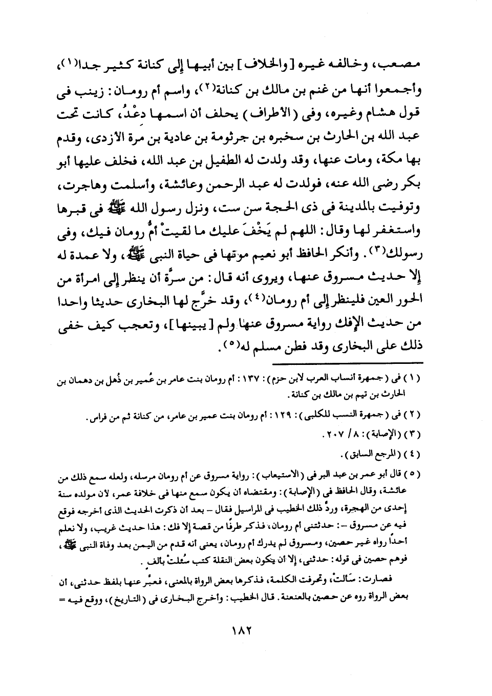 [ (1) ] في (جمهرة أنساب العرب لابن حزم) : 137: أم رومان بنت عامر بن عمير بن ذهل بن دهمان بن الحارث بن تيم بن مالك بن كنانة.