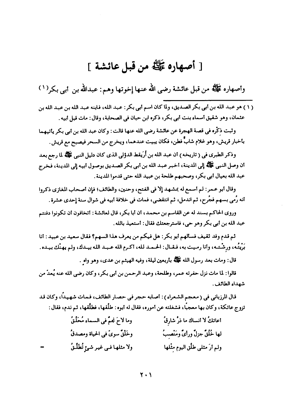 وأصهاره صلّى اللَّه عليه وسلم من قبل عائشة رضى اللَّه عنها إخوتها وهم: عبد اللَّه بن أبى بكر [ (1) ]