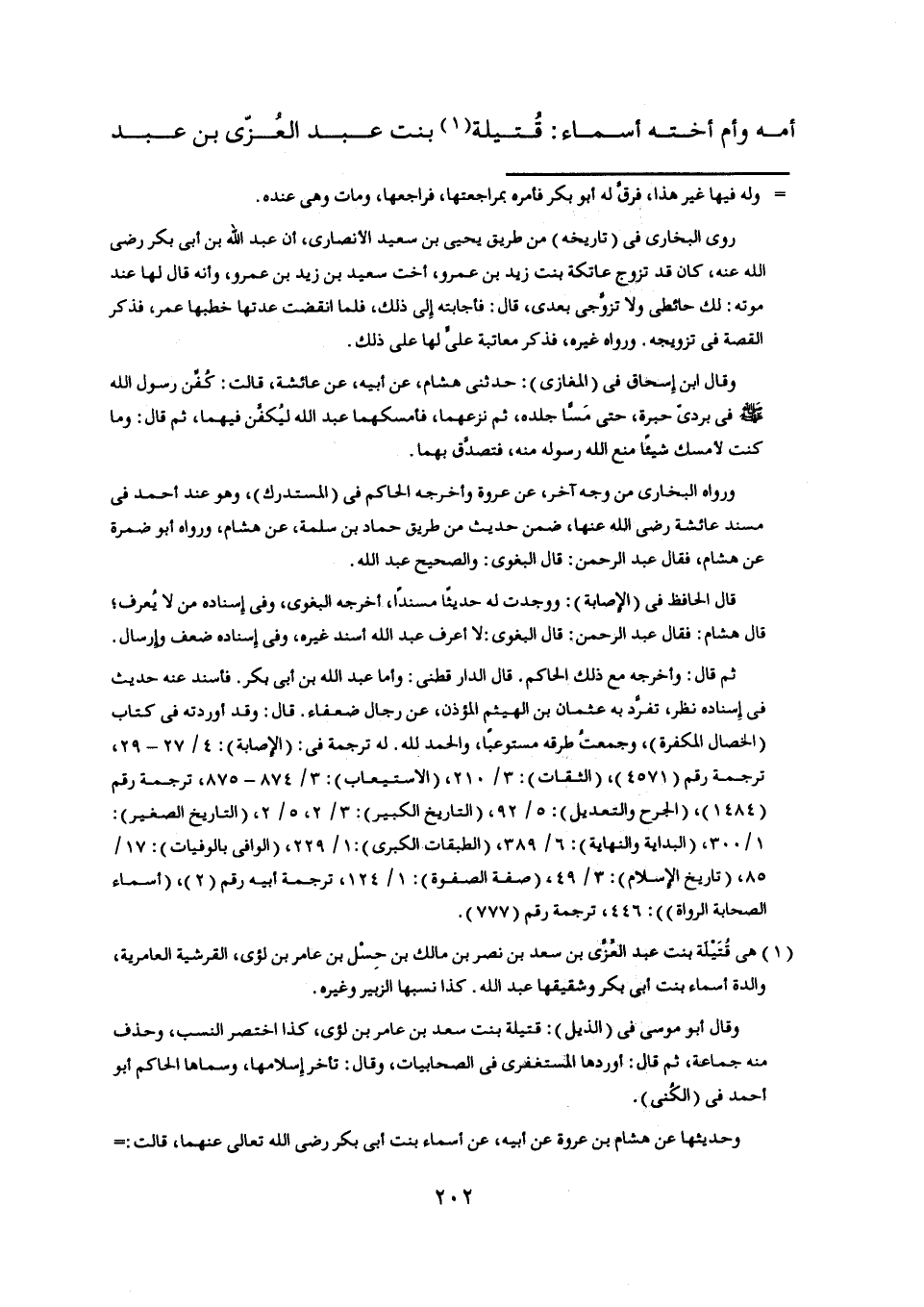 [ (1) ] هي قتيلة بنت عبد العزّى بن سعد بن نصر بن مالك بن حسل بن عامر بن لؤيّ، القرشية العامرية، والدة أسماء بنت أبى بكر وشقيقها عبد اللَّه. كذا نسبها الزبير وغيره.