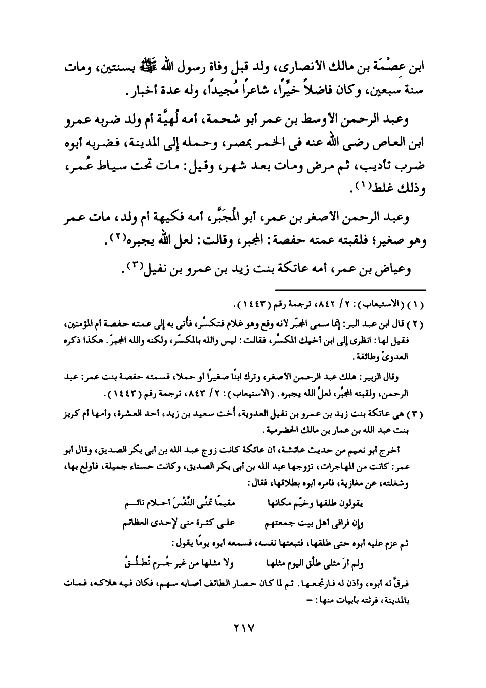 [ (3) ] هي عاتكة بنت زيد بن عمرو بن نفيل العدوية، أخت سعيد بن زيد، أحد العشرة، وأمها أم كريز بنت عبد اللَّه بن عمار بن مالك الحضرمية.