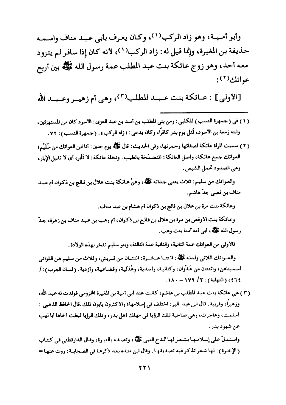 [ (3) ] هي عاتكة بنت عبد المطلب بن هاشم، كانت عند أبى أمية بن المغيرة المخزومي فولدت له عبد اللَّه، وزهيرا، وقريبة. قال ابن عبد البر: اختلف في إسلامها، والأكثرون يأبون ذلك. قال الحافظ الذهبي: