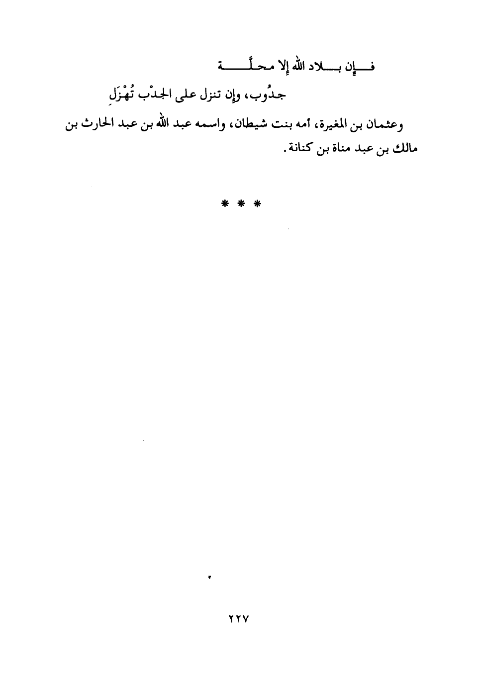 فإن بلاد اللَّه إلا محلّة ... جدوب، وإن تنزل على الجدب تهزل