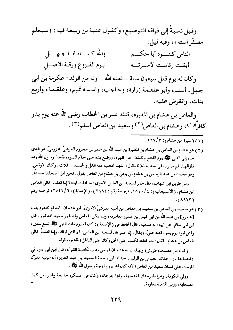 ومن طريق ابن شهاب، قال عمر لسعيد بن العاص الأموي: ما قتلت أباك؟ إنما قتلت خالي العاص ابن هشام. (الاستيعاب) : 4/ 1540، ترجمة رقم (2684) ، (الإصابة) : 6/ 2542، ترجمة رقم (8973) .