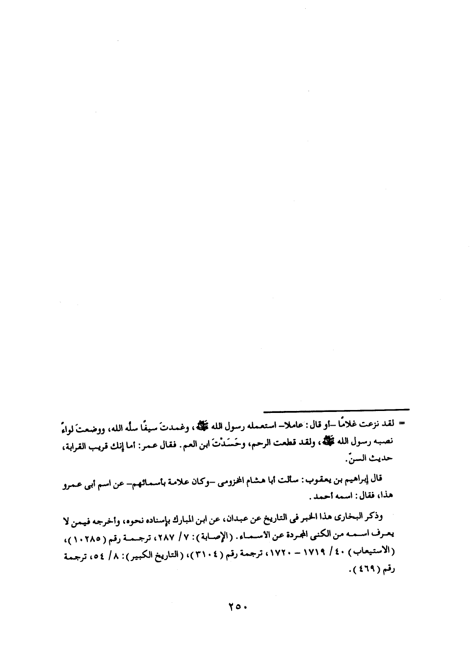 وذكر البخاري هذا الخبر في التاريخ عن عبدان، عن ابن المبارك بإسناده نحوه، وأخرجه فيمن لا يعرف اسمه من الكنى المجردة عن الأسماء. (الإصابة) : 7/ 287، ترجمة رقم (10285) ، (الاستيعاب) 40/ 1719- 1720، ترجمة رقم (3104) ، (التاريخ الكبير) : 8/ 54، ترجمة رقم (469) .