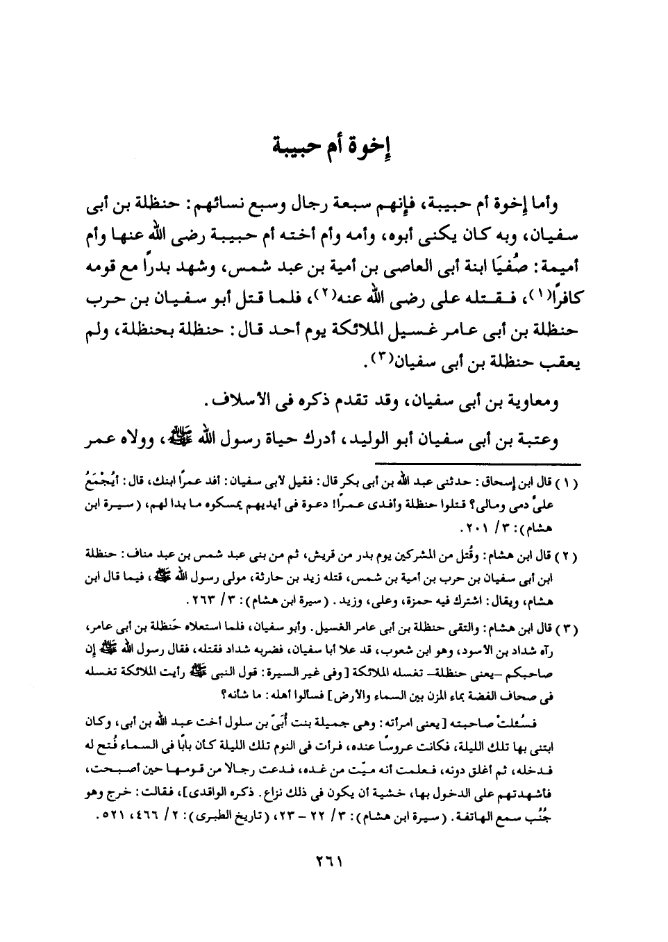 [ (2) ] قال ابن هشام: وقتل من المشركين يوم بدر من قريش، ثم من بنى عبد شمس بن عبد مناف: حنظلة ابن أبى سفيان بن حرب بن أمية بن شمس، قتله زيد بن حارثة، مولى رسول اللَّه صلّى اللَّه عليه وسلم، فيما قال ابن هشام، ويقال: اشترك فيه حمزة، وعلى، وزيد. (سيرة ابن هشام) : 3/ 263.