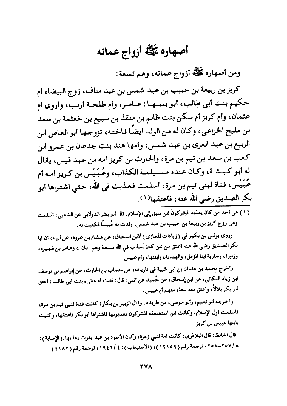 وأخرجه أبو نعيم، وأبو موسى، من طريقه. وقال الزبير بن بكار: كانت فتاة لنبي تيم بن مرة، فأسلمت أول الإسلام، وكانت ممن استضعفه المشركون يعذبونها فاشتراها أبو بكر فأعتقها، وكنيت بابنها عبيس بن كريز.