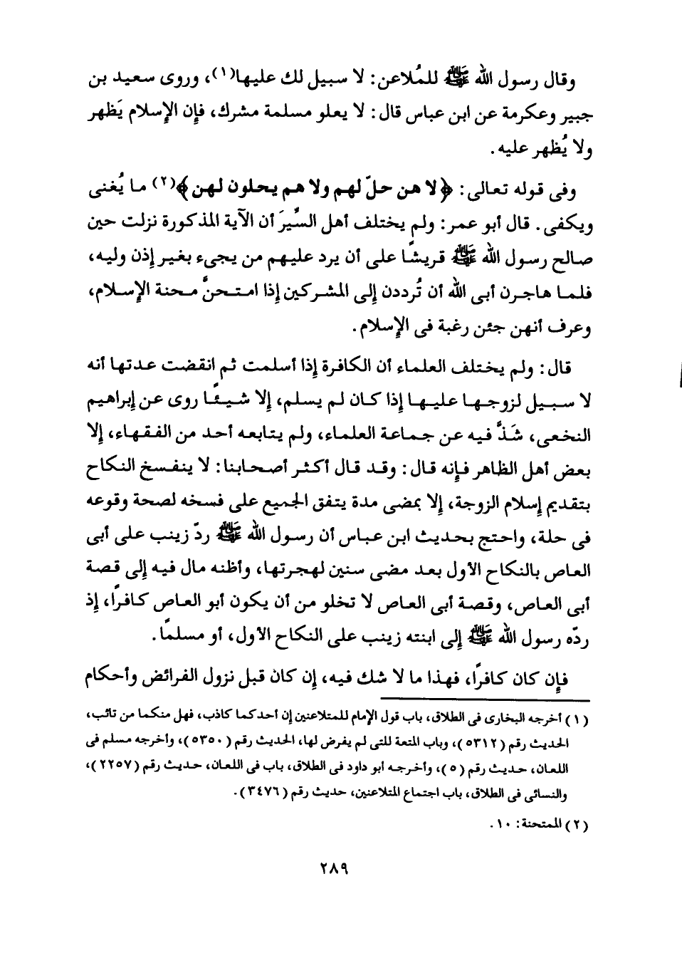 وقال رسول اللَّه صلّى اللَّه عليه وسلم للملاعن: لا سبيل لك عليها [ (1) ] ،