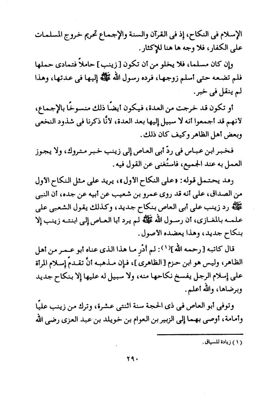 قال كاتبه [رحمه اللَّه] [ (1) ] : لم أدر ما هذا الّذي عناه أبو عمر من أهل الظاهر، وليس هو ابن حزم [الظاهري] ، فإن مذهبه أنّ تقدم إسلام المرأة على إسلام الرجل يفسخ نكاحها منه، ولا سبيل له عليها إلا بنكاح جديد وبرضاها، واللَّه أعلم.
